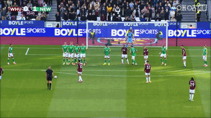 第35分钟,西汉姆联左路传中被门将打出,帕奎塔外围得球远射洞穿球门,西汉姆联1-1纽卡斯尔联。↓