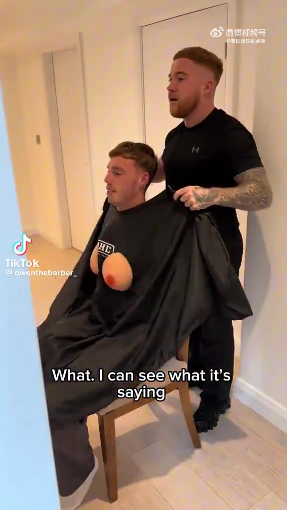 帕尔默的理发师捉弄他,给他披了一件带假胸的理发袍