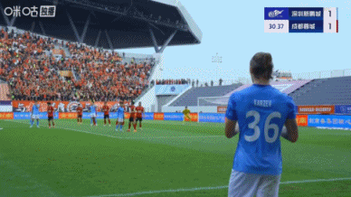第19分钟,古尔芬克尔左路突破传中,费利佩头球扳平比分,成都蓉城1-1深圳新鹏城。↓