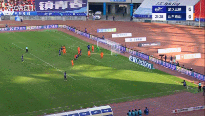 第11分钟,武汉三镇左路传中,前点图多列头球攻门被王大雷扑出!达兰头球补射破门!但因越位被判无效↓