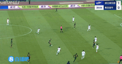 第33分钟,李提香斜传前场,弗兰克插上头球冲顶破门!浙江队暂1-0青岛海牛