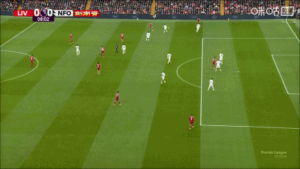 第12轮,利物浦vs诺丁汉森林,比赛第9分钟,加克波走底线内切传中被挡了一下,麦卡利斯特射门被解围。