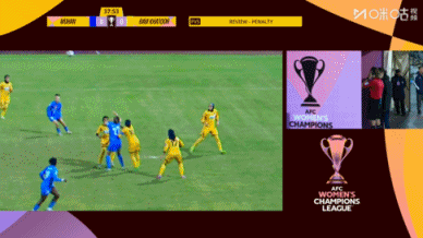 第38分钟,巴姆卡图恩女足球员疑似禁区内手球,主裁判在查看回放后没有吹罚点球。↓