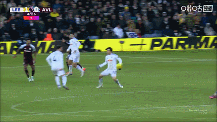 第12轮,利兹联vs维拉,上半场补时第3分钟,田中碧飞铲布巴卡尔·卡马拉染黄!