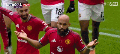 全队庆祝姆伯莫进球时,阿莫林急忙找到卢克肖耳语布置
