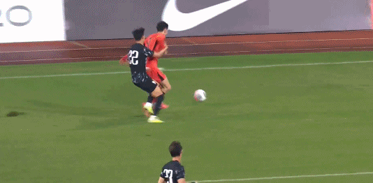 韩国球员朴俊瑞背后推搡+挑衅护球的拜合拉木,留洋荷乙邓伯什的王博豪为其出头,直接将韩国球员撞倒。